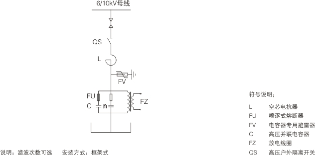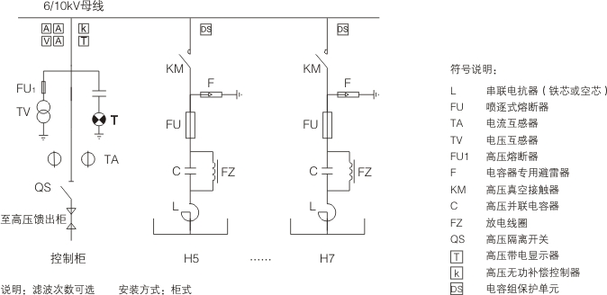 高壓FC每個支路由真空開關、濾波電容器、濾波電抗器、放電線圈、電流互感器、避雷器等組成。