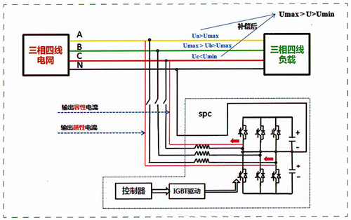 DESPC三相負荷不平衡自動調節裝置綜合利用IGBT技術、SVG技術、電力電子技術等多種技術融合,裝置利用采樣電路實時采集低壓配電線路的三相電壓、三相電流等運行參數,通過模型運算計算出三相間的不平衡負荷和需要補償的電流,然后根據裝置設定的值來控制PWM信號發生器發出控制信號給內部的IGBT使逆變器產生滿足要求的電流信號。最終由逆變器產生一個滿足要求的電流信號送入到系統中,實現三相符合平衡調節。三相負荷不平衡自動調節裝置主要用于低壓配電用戶側,治理三相電流不平衡,相電壓偏低和補償無功,優化電能質量。